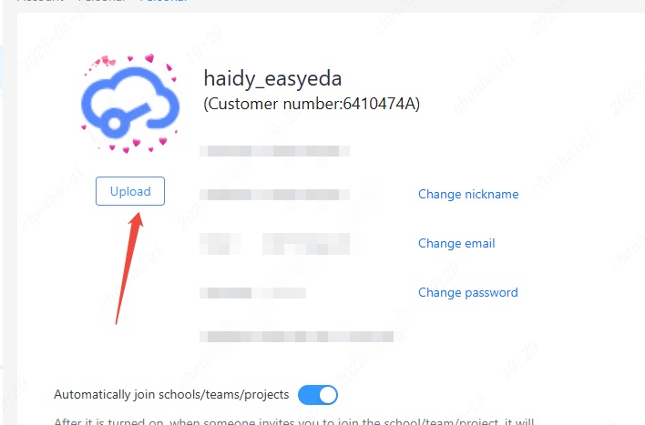 Enter the Personal Center in the upper right corner of the editor.Then click "upload" to change the avatar.