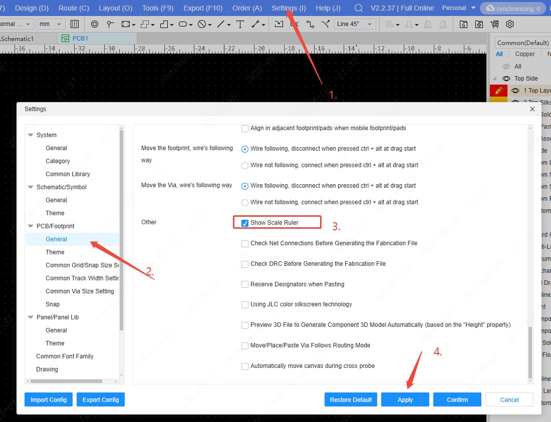 When you open the pcb after the discovery of the previous drawing of the pcb are all gone can be dealt with in this way: first go to the 3d preview to check whether the board exists, if so, modify the settings inside the engine for 2d mode. This is because the new version of the optimisation, some computers do not support the gpu engine will make the pcb black, just need to change the engine can be, not a big problem.