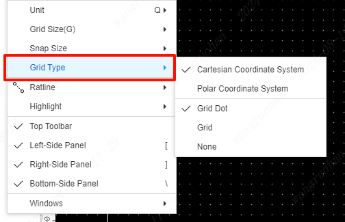 Supports switching between two grid types: Cartesian coordinate system, polar coordinate system